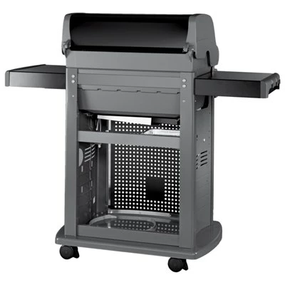 Featuring a stunning overhaul in the aesthetics; the look of this BBQ incorporates a black enamel and stainless steel finish coupled with a stylish mesh covering the front of the storage unit underneath the cook box.